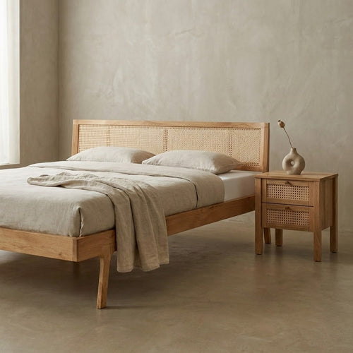Balder snedker sengeramme i massiv FSC egetræ og fransk naturflet – Natur olie